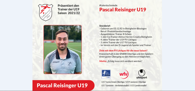 Tolle Nachrichten können wir für unser U19 EnBW Oberliga Team vermelden. Auch in der kommenden Saison 2021/22 werden Pascal Reisinger und sein Co-Trainer Sven Block das U19 Team weiterhin trainieren. Somit werden die Beiden Ihre erfolgreiche Arbeit der letzten Jahre weiterhin in Löchgau fortsetzen.